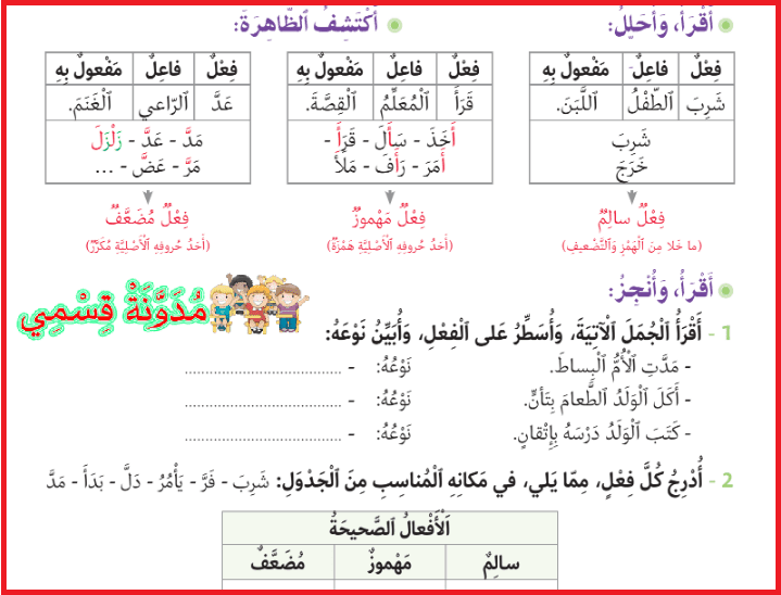 تمارين الدعم للمرحلة الثانية في اللغة العربية للمستوى الرابع ابتدائي
