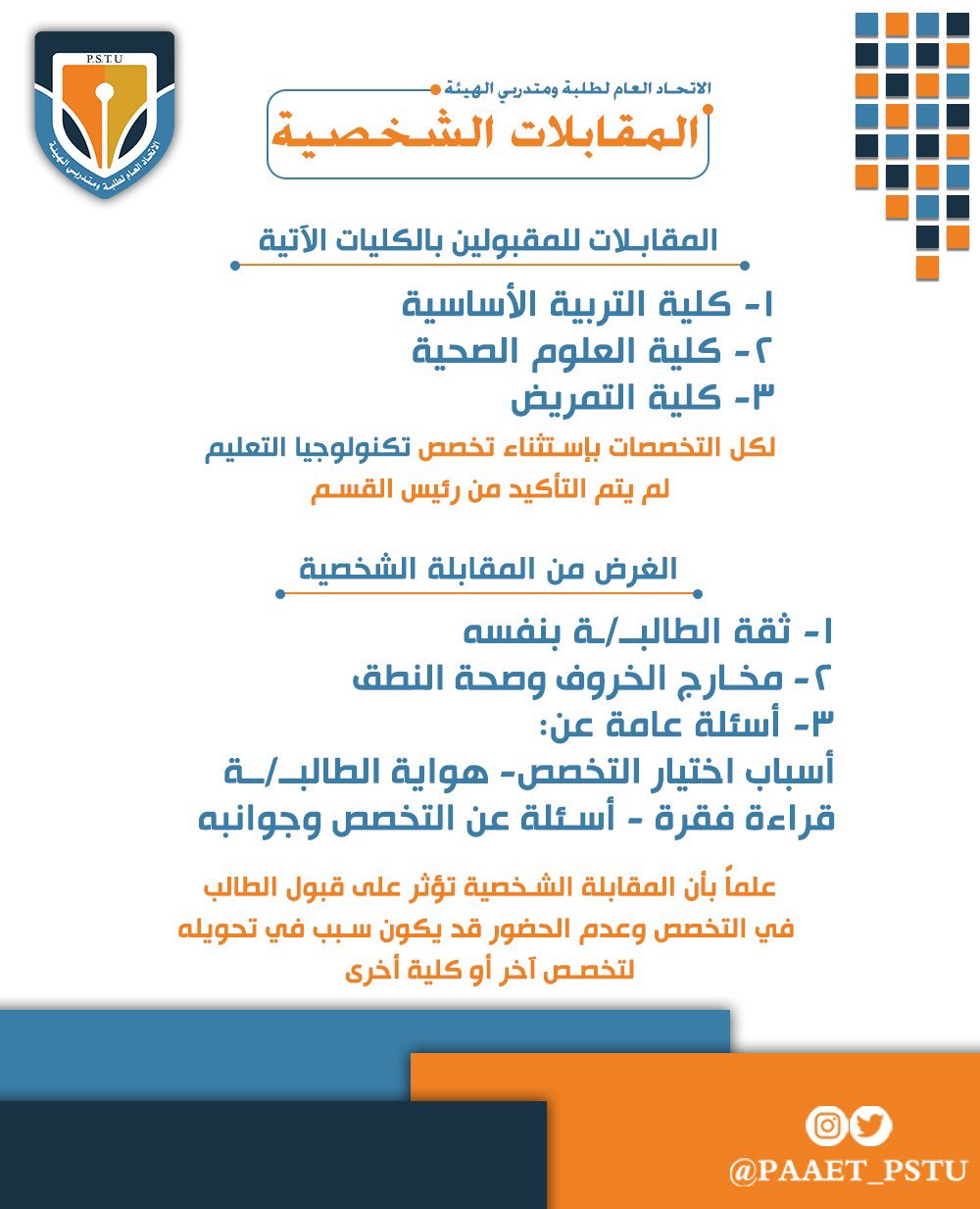 اسئلة المقابلة الشخصية للتخصصات الصحية. السلام عليكم ورحمة الله وبركاته بتكلم لكم عن تجربتي بالرفض في المقابله للتخصصات الصحيه جامعة الملك سعود بالبدايه انا كنت مثلي مثل اي طالبه مقدمه على جامعة سعود انقبلت وارسلو لي موعد المقابله وكل شي كان موضح بالرساله. تخرج عنها أسئلة المقابلة. وفي تلك المرحلة يمنح الم قي مون ورقة ي بدى فيها الطالب أو الطالبة رغباتهم سواء الانتظام في كلية الطب البشري أو الصيدلة أو التمريض أو طب الأسنان أو العلوم. أهم شي خذ بطـاقتك الشخصيـة والاورقه اللي تاخذهـا من معهد يختبرك برومترك بعد ماتدفع 400 ريآل.