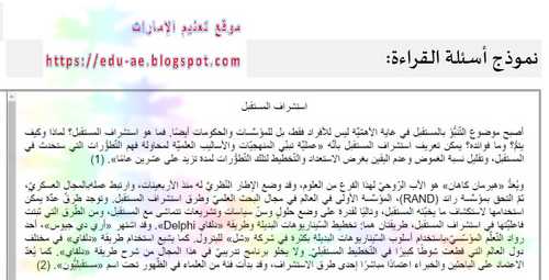 نموذج امتحان Emsat عربى مع الحل