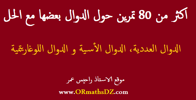 اكثر من 80 تمرين حول الدوال العددية الاسية و اللوغاريتمية أكثرها مع الحل