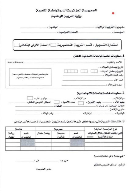 انطلاق التسجيلات الخاصة بالتحضيري والسنة الأولى إبتدائي 2020 2021