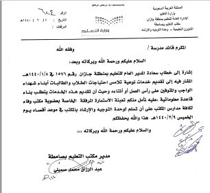 تعميم حصر ابناء الشهداء والمعلمين المتوفين على رأس العمل